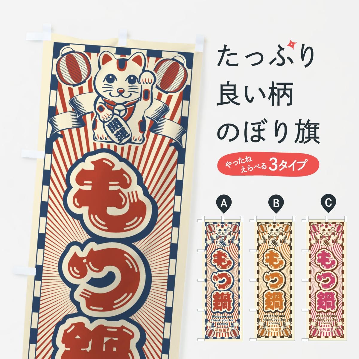 内容のぼり もつ鍋・レトロ・招き猫 のぼり旗