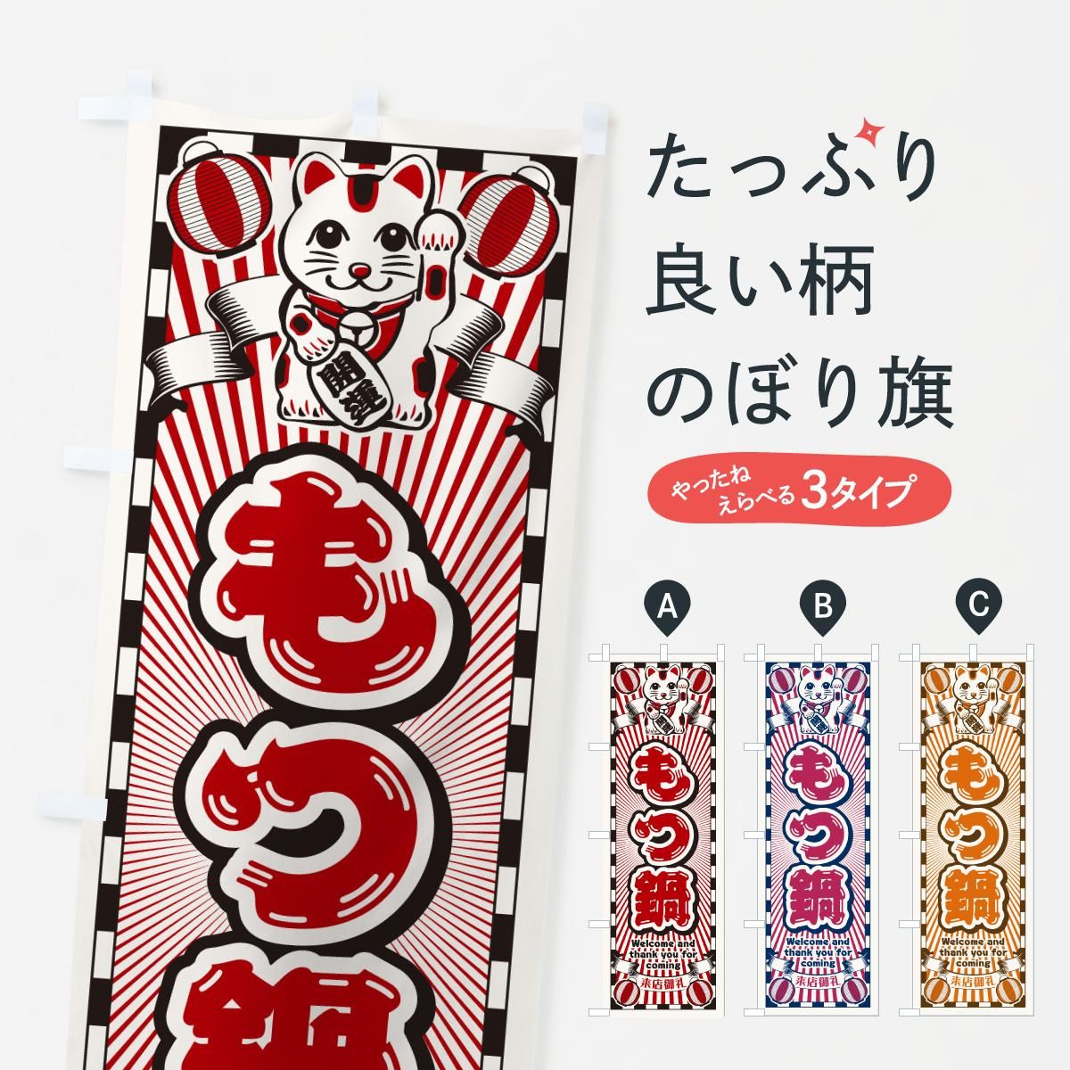 内容のぼり もつ鍋・レトロ・招き猫 のぼり旗